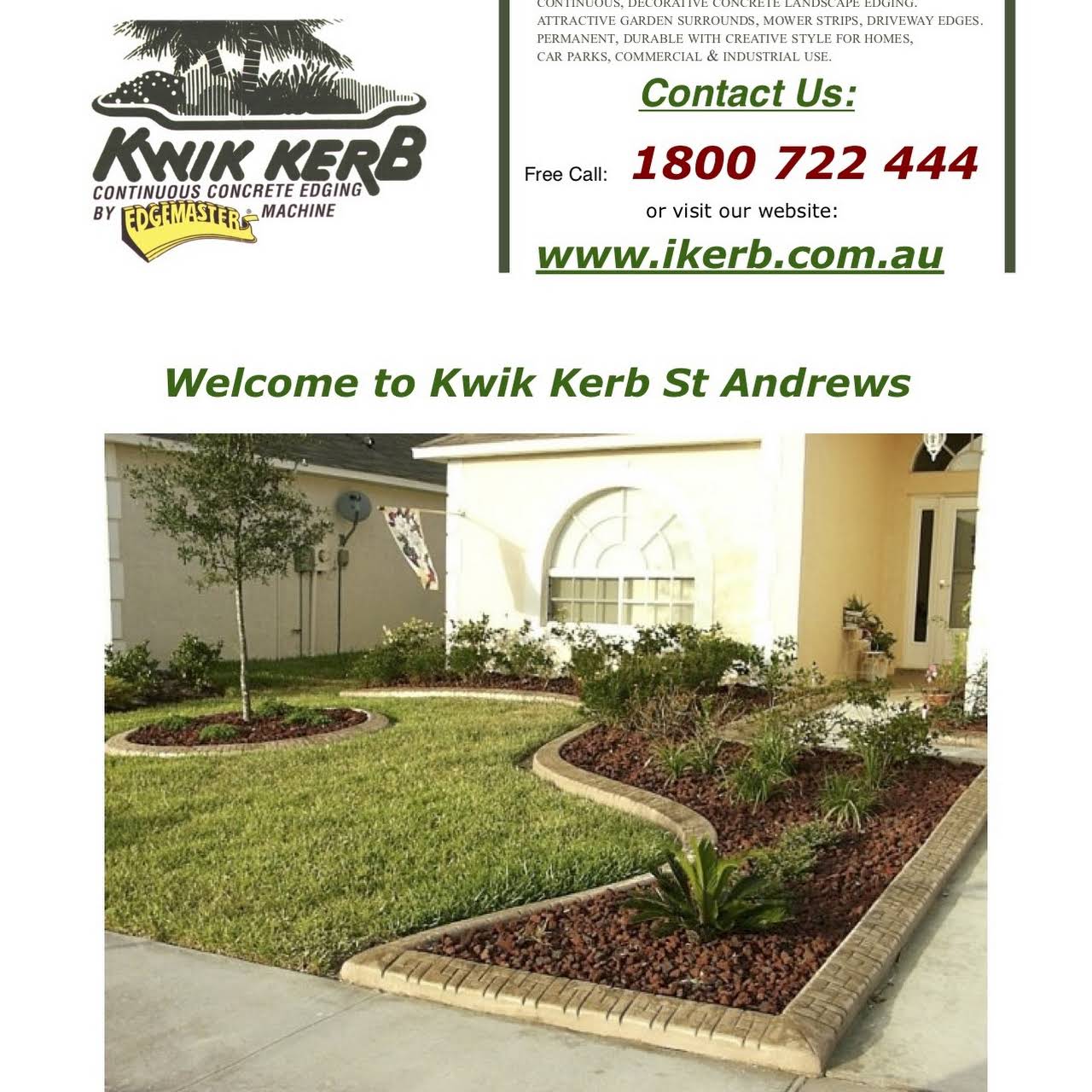 The concept of machine extruded concrete landscape kerbing was new at that time and kerb machine owners were. The kwik kerb business can be operated by just one person, and can produce highly profitable continuous concrete edging at a rapid rate. Kwik kerb® experience ensures customers of the best continuous concrete landscape curbing for years. Kwik kerb® is well recognised and respected for its quality concrete garden borders. Kwik kerb exclusive proven business opportunity.